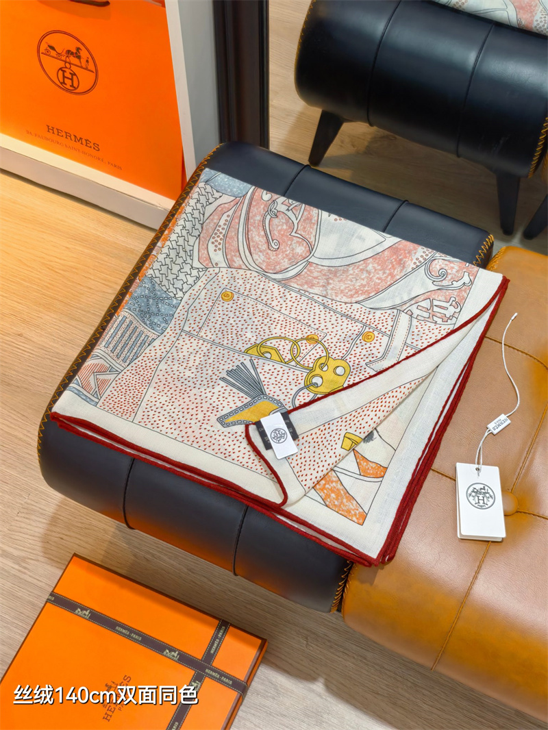 HERMES 2024秋冬新款時尚圍巾 尺寸:140-140