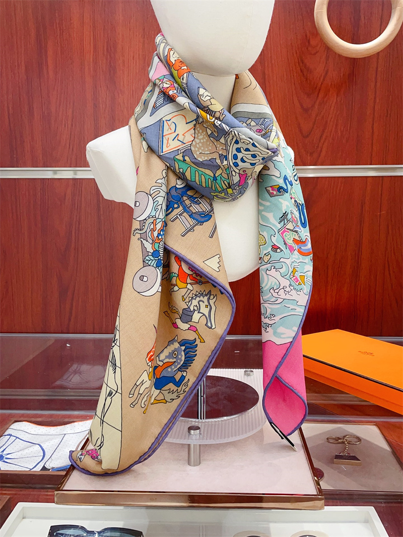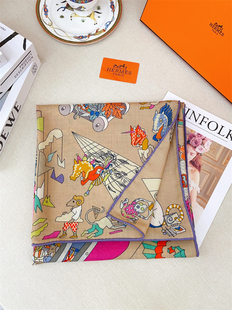 HERMES 2024秋冬新款時尚圍巾 尺寸:140-140