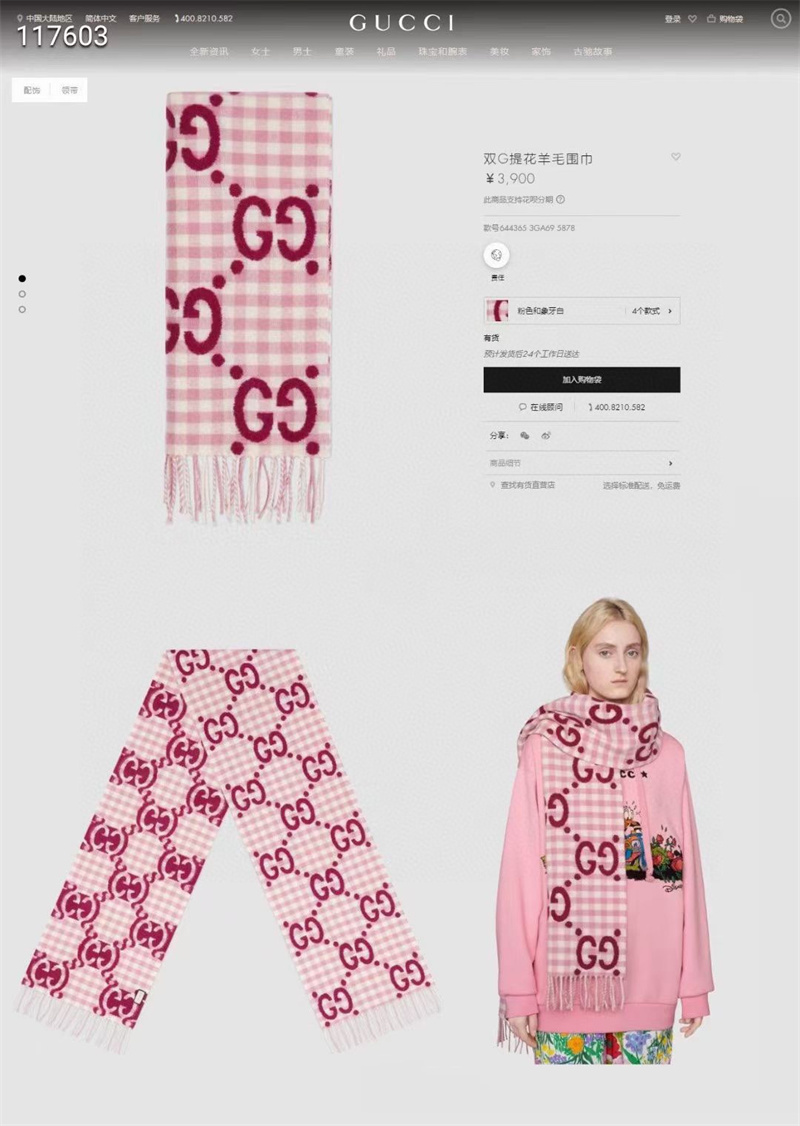 GUCCI 2025秋冬新款時尚圍巾 尺寸:240-35